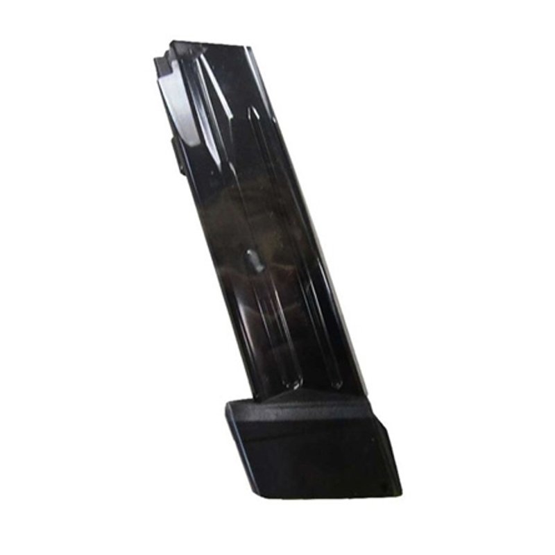 This translucent polymer extended pistol magazine may look like a 9×19/9mm-style mag but verify the exact caliber and pistol model/generation on the listing before purchasing—fit, mag-catch cuts and capacity are model-specific. Inspect the feed lips, follower and spring for damage, keep the feed lips and follower clean and lightly lubricated, and avoid long-term storage fully loaded to preserve spring life. Function-test the magazine several times at the range to confirm reliable seating, feeding and lock-back, and always follow local capacity, storage and safety laws.