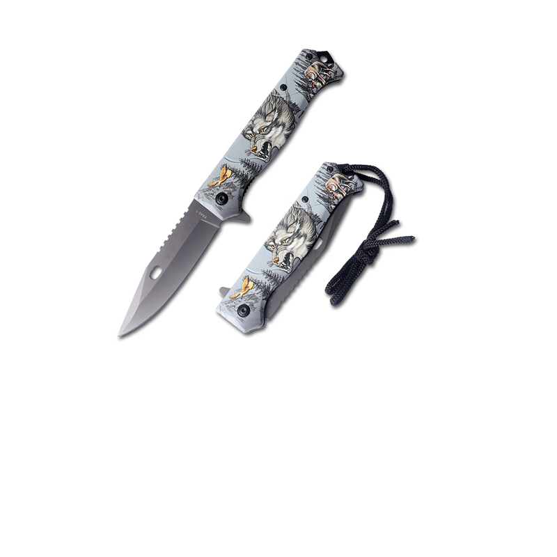 This folding knife features a sharp stainless-steel blade and a detailed wolf-themed handle for a bold, rugged look. Designed for everyday use, it offers a secure grip and smooth opening action. The durable construction ensures reliability for outdoor, camping, or collection purposes. Stylish and functional, itβs a perfect blend of strength and craftsmanship.