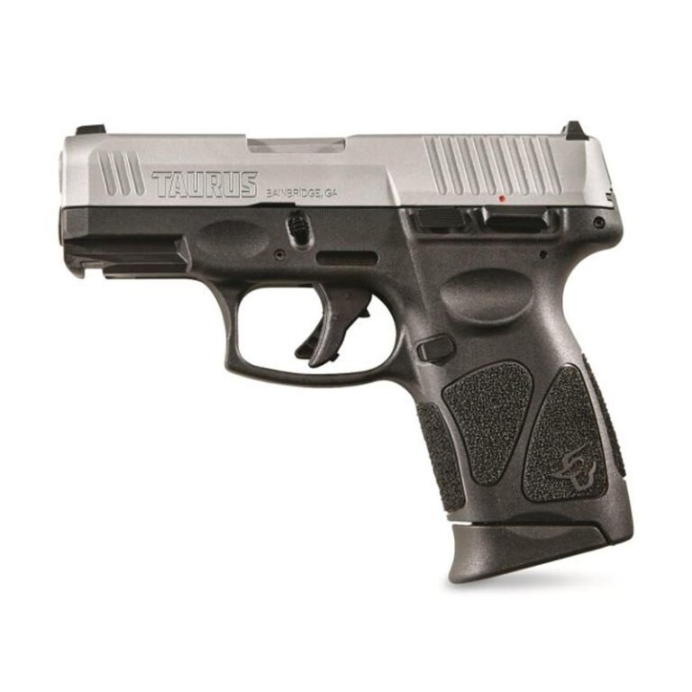 The Taurus G3c Stainless is a compact, polymer-frame, striker-fired 9mm engineered for everyday carry and dependable range performance. Featuring a 3.2″ barrel, corrosion-resistant Tenifer-treated slide, and frame-mounted manual safety, the G3c blends practical duty features with ergonomic design—stippling and “memory pads” provide a secure, repeatable grip while a crisp, short-reset trigger promotes fast, accurate follow-ups. Practical details like a Picatinny rail for lights/lasers, fixed front white-dot and drift-adjustable rear sights, a loaded-chamber peep, and unique second-strike single-action capability make it user-friendly and resilient in the field. Delivered with three 12-round magazines, the G3c Stainless offers real value for shooters seeking performance, features, and reliability in a compact package.